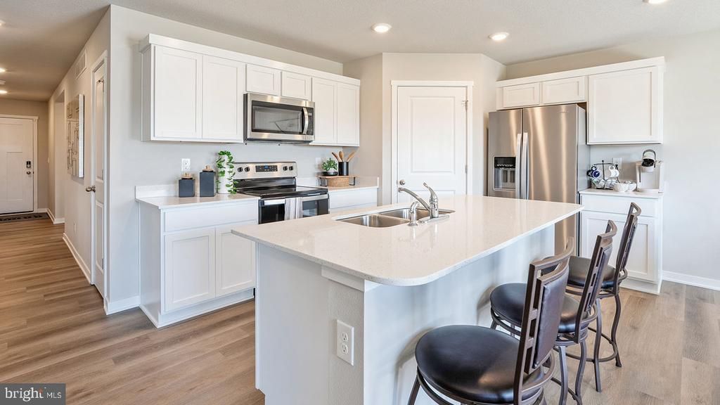 Come see the Hamilton floorplan. This single-story home option is beautifully laid out with 3 bedrooms, 2 bathrooms, with a large unfinished basement, and a 2-car garage with 1,498 finished square feet. When you enter the home, you'll be greeted with two bedrooms and a secondary bathroom, as well as a main level laundry room. Continuing down the hallway, find yourself in the open concept living area that blends the kitchen, great room, and dining area. The kitchen features shaker-style cabinetry and quartz countertops. It is set off from the living area by a kitchen island with a built-in sink. Walking through the great room, you'll find the primary bedroom with an attached bathroom. The bathroom has a double vanity and a large walk-in closet for all your belongings.