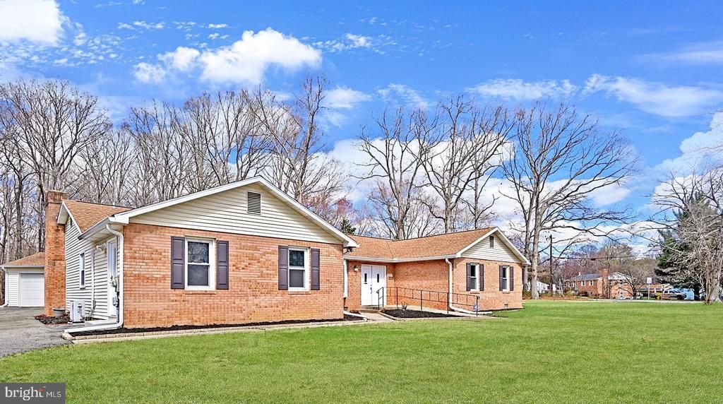 This elegant brick rambler is immaculate and offers one-level living at its best. Warm and bright throughout, the home features 4 generous bedrooms and 3.5 beautifully renovated bathrooms. Two primary suites each feature their own private en-suite, offering peaceful retreats for rest and relaxation. The second primary suite is especially versatile, ideal as an in-law suite, rentable space, home office, or recreation room. Designed with comfort and accessibility in mind, the home features numerous ADA-friendly elements, including a ramp and wide front entrance, widened interior doorways, spacious hallways for easy navigation, and a walk-in shower to enhance everyday convenience. The kitchen, fully updated with new cabinets and granite countertops, offers modern amenities, abundant workspace, and a charming window seat overlooking the front yard, perfect for spotting visiting wildlife. The bathrooms have also been tastefully renovated, adding a fresh and luxurious feel throughout. Elegant crown molding adds a refined finishing touch throughout the home. A cozy wood-burning fireplace anchors the family room, creating the perfect ambiance for relaxing evenings, or gathering with friends and family. Outside, a spacious detached garage and workshop provide excellent storage and the perfect space for DIY projects. An expansive deck spans the entire length of the back of the house. It can be accessed from either the living room or the primary suite and features a covered and screened in gazebo, an ideal setting, overlooking the serene, forested area behind the home, offering privacy and a peaceful natural backdrop, ideal for outdoor entertaining. Situated on a lovely corner lot, the .72 level acres offer endless opportunities for gardening, play, or simply enjoying the open space. With no HOA, you’ll have the freedom to personalize and enjoy your property as you wish. This home is move-in ready for the most discerning buyer and truly checks every box, style, accessibility, space, and setting. Don’t miss your chance to make this happy home yours!