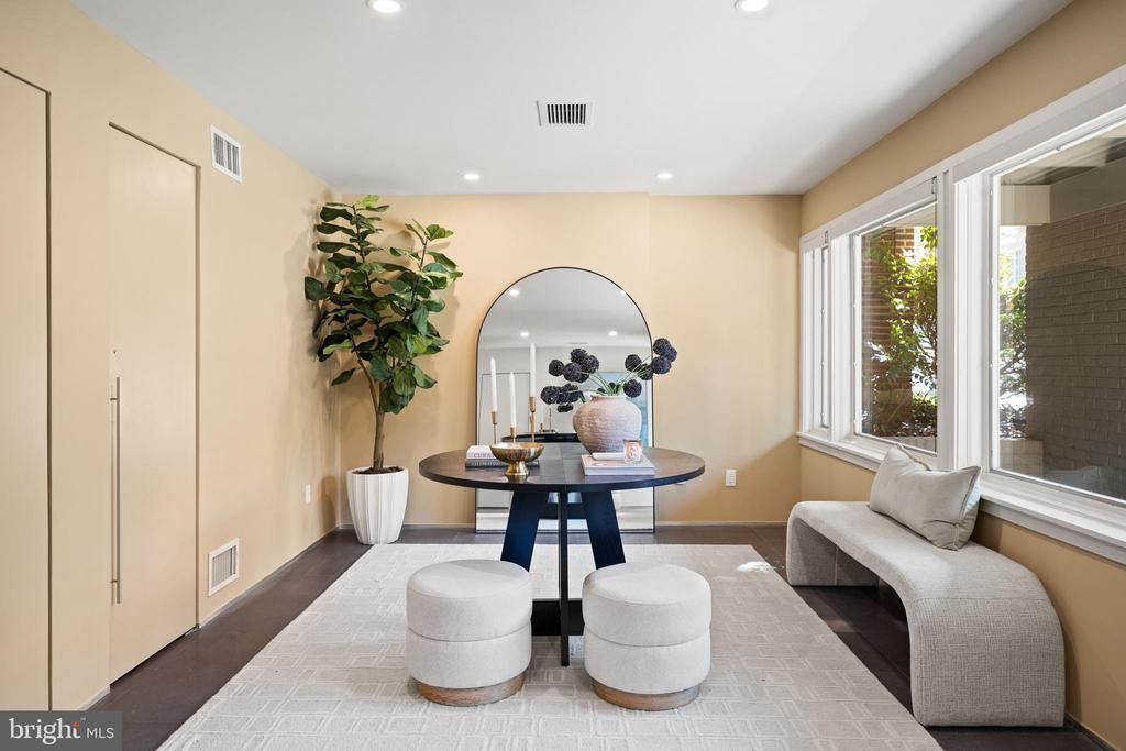 This contemporary residence offers generous scale, natural light, and a thoughtful layout across multiple levels. Clean lines, open spaces, and strong architectural elements create a home that is both functional and visually compelling. The entry foyer is spacious and filled with light, with a powder room, coat closet, and direct access to the one-car garage. A lower level just off the entry provides flexible space, well suited for a gym, office, or studio. A custom floating staircase connects the home’s main levels. The kitchen, dining, and family areas are open and flow directly to landscaped gardens and a flagstone terrace. The outdoor space includes an in-ground pool and a pergola, creating a natural extension of the living area. One level above, the formal living room features a fireplace, high ceilings, and a wall of glass opening to a balcony. The adjacent library includes built-in shelving and can function as a reading room, office, or media space. The proportions on this level allow for comfortable everyday use as well as entertaining. The primary suite occupies its own floor and overlooks the garden. The bathroom includes a soaking tub, large shower, and a walk-in closet. A private balcony adds an additional outdoor connection. The next level includes a sitting room with a fireplace and balcony, an en-suite bedroom, an additional bedroom, a hall bathroom, and laundry. The top floor offers a fourth bedroom, along with a sitting room that can easily function as a fifth bedroom. White oak floors run throughout the home, reinforcing a consistent and clean aesthetic. The property is located on Bancroft Place, a quiet one-way street in the embassy district. It is within walking distance of Mitchell Park, Dupont Circle, restaurants, shops, museums, and cultural institutions. A well-designed home in a highly regarded location, offering space, light, and flexibility.
